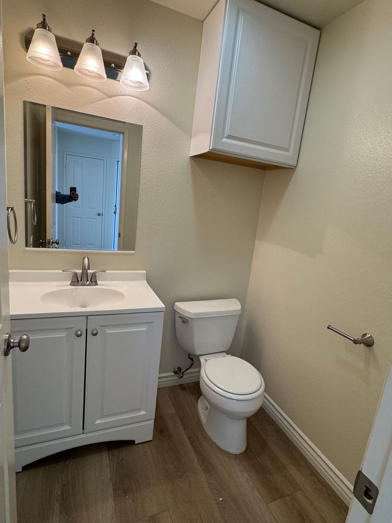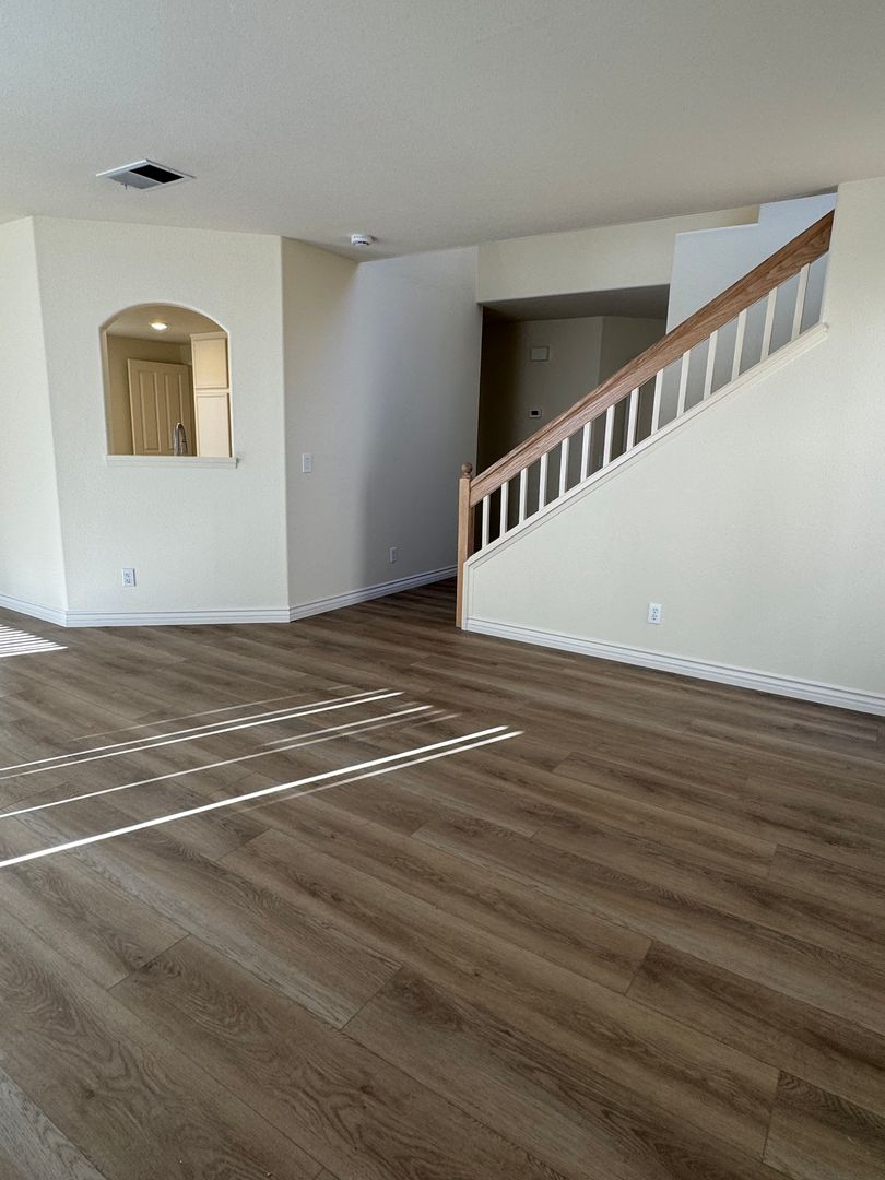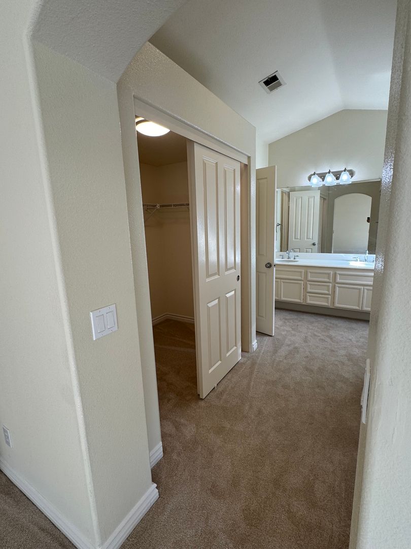 Welcome to your new home. This comfortable 3-bedroom, 2.5-bath residence features attractive landscaping, a private grassy backyard, and a two-car garage. The primary bedroom offers two spacious walk-in closets, and the home includes newly installed central air conditioning and brand-new flooring throughout.