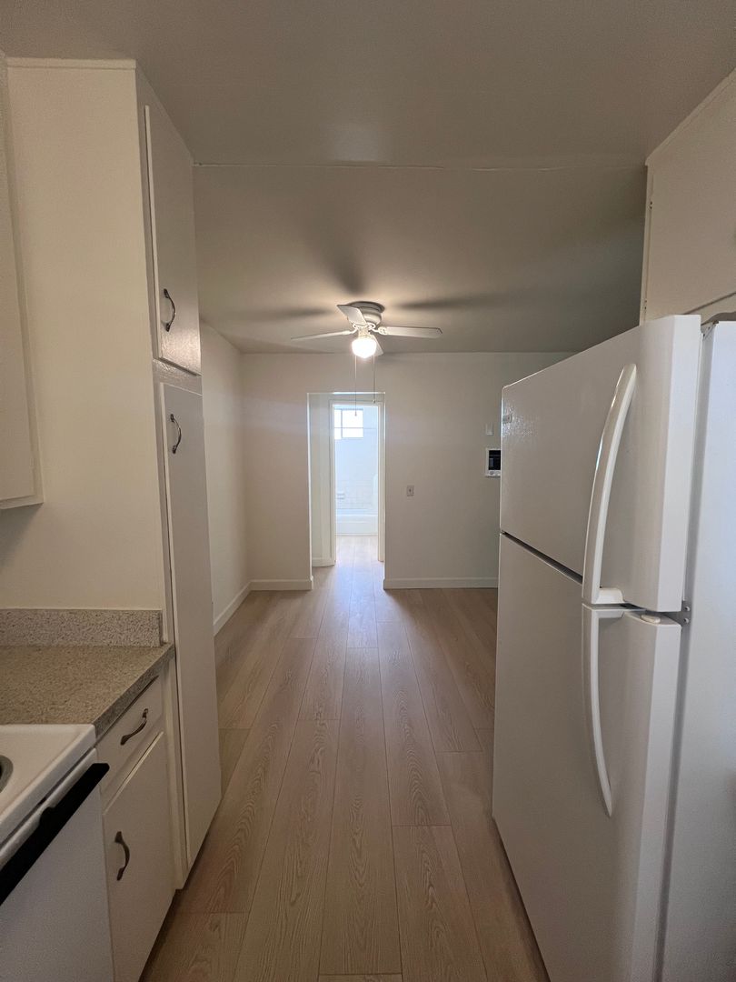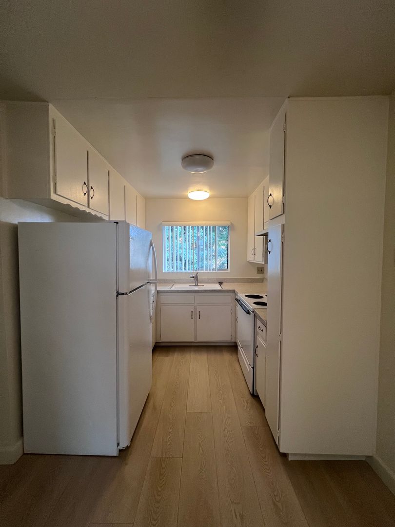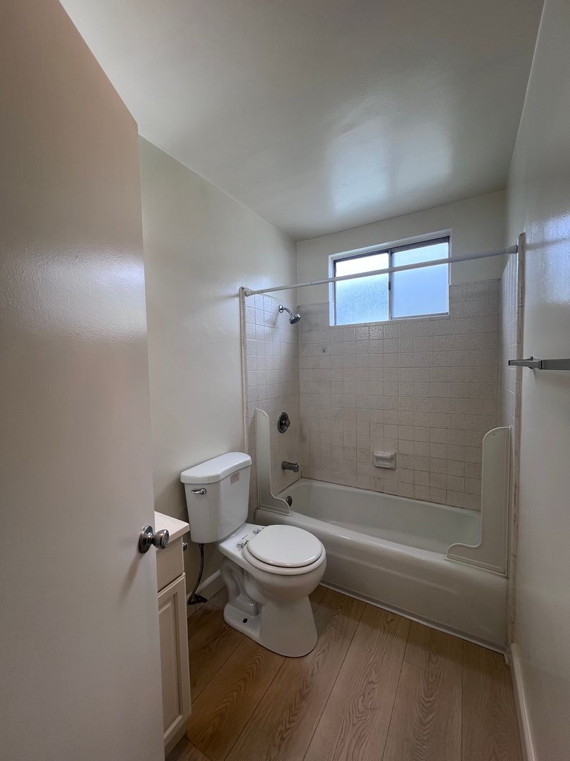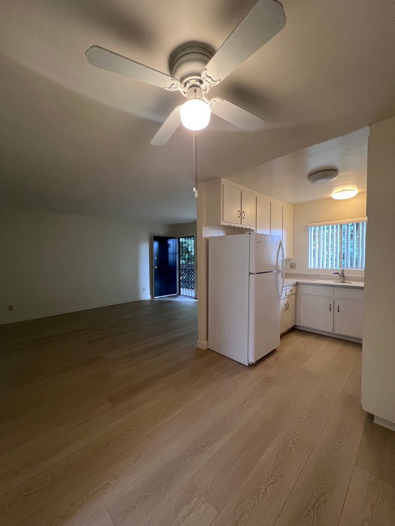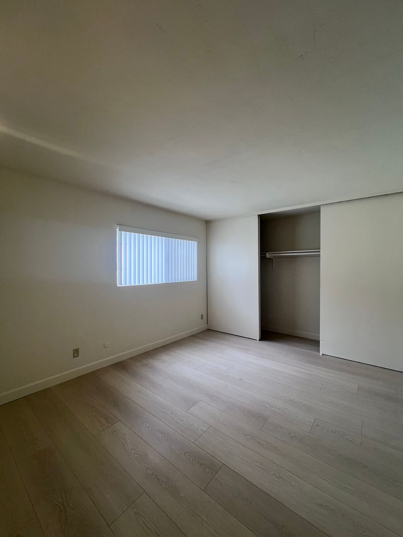 Large upper 1BR/1BA upstairs unit in City Heights. Small complex w/gated entry. Unit has spacious kitchen w/separate dining area, brand new luxury vinyl plank flooring throughout & fresh paint, assigned parking, & coin laundry on site. Tenants pay for portion of water. 1 year lease minimum. Near small shops, restaurants, bus, & 15+805 Freeways. $40 application fee per adult.