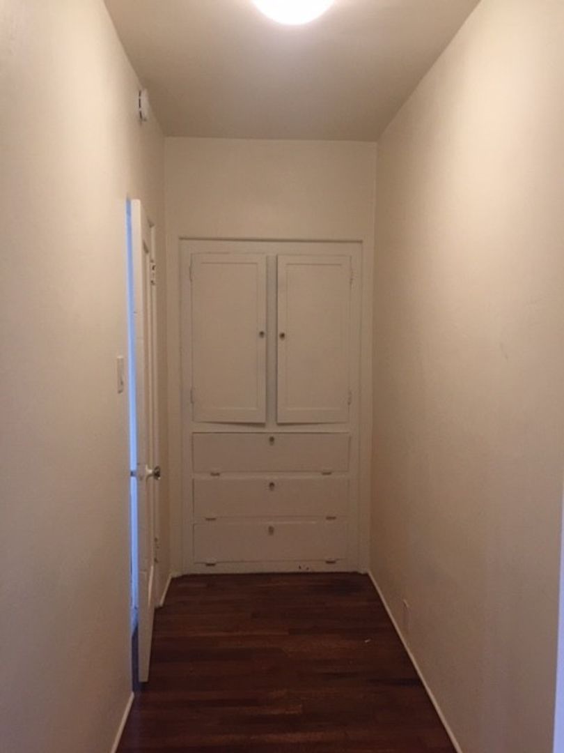 Spanish style 1Br/1Ba duplex. Refinished Wood floors,freshly painted, large walk-in-closets in Livingroom & Bedroom ,Unit has separate dining room, lots of storage, gas stove+fridge, & huge back yard area, One single car garage for storage, shops, restaurants. & 805/15 Freeways. 12 month lease minimum. $35 application fee per adult. Please do not disturb other residents. Sorry no pets, no co-signors.