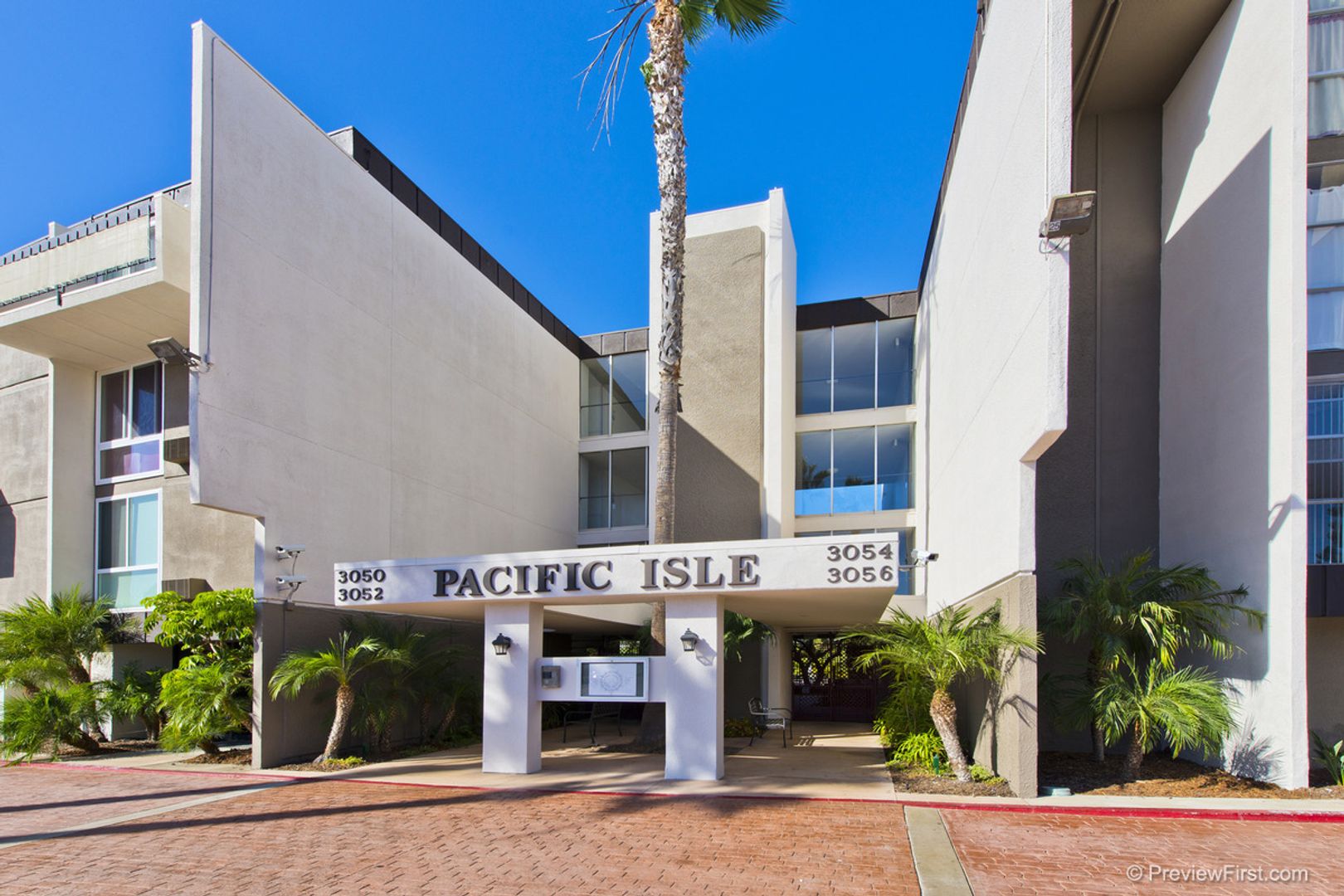 Top floor 1-bedroom condo with TWO parking spots, new carpet, and private balcony. Enjoy views of the Sea World fireworks! Located in Pacific Isle, a resort-style gated community featuring amenities like a large pool, spa, fitness center, game room, tennis courts, sand volleyball court, and laundry room. Also includes a storage closet near parking. Less than 2 miles to Ocean Beach and very easy freeway access. Available now!