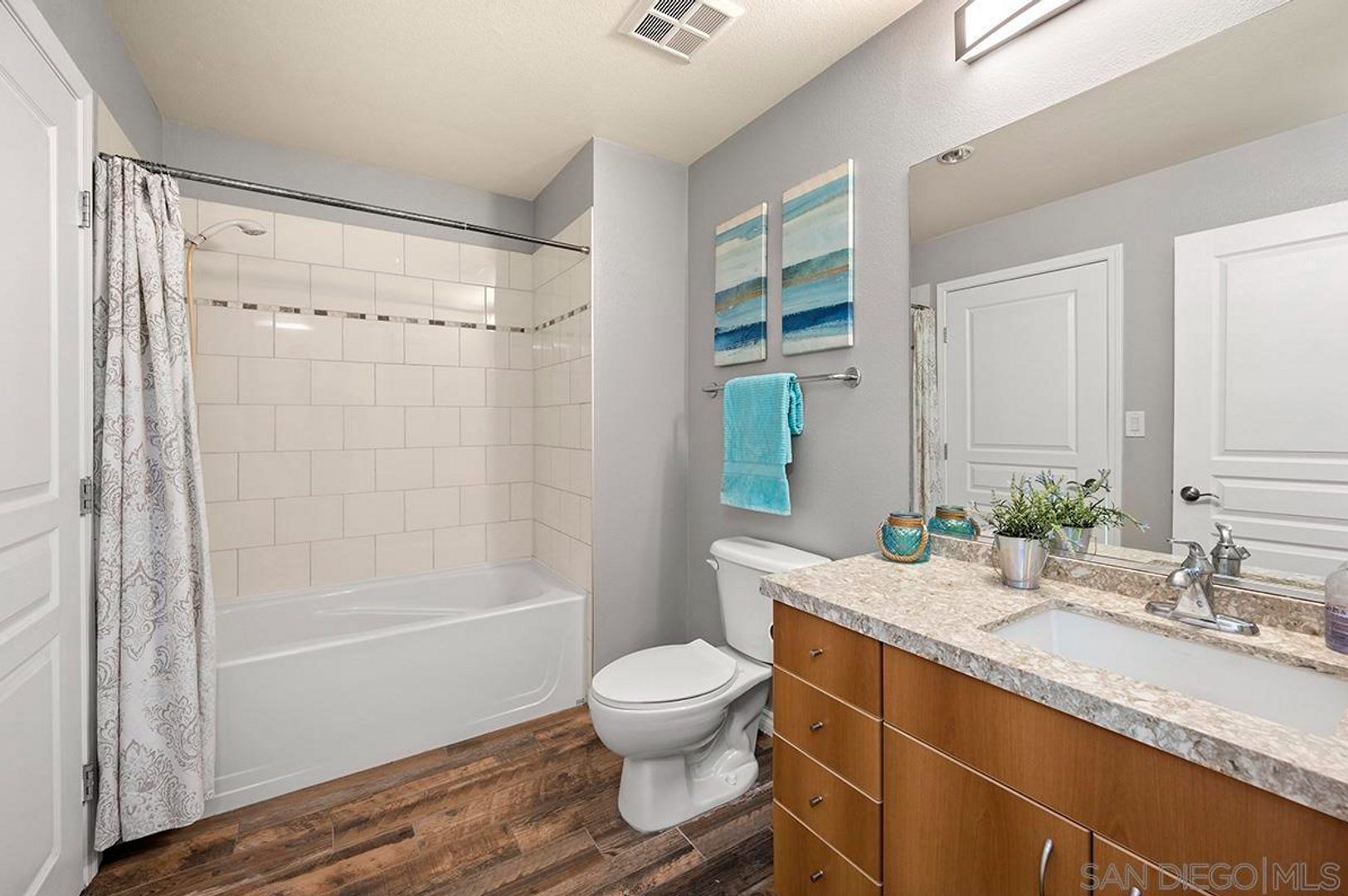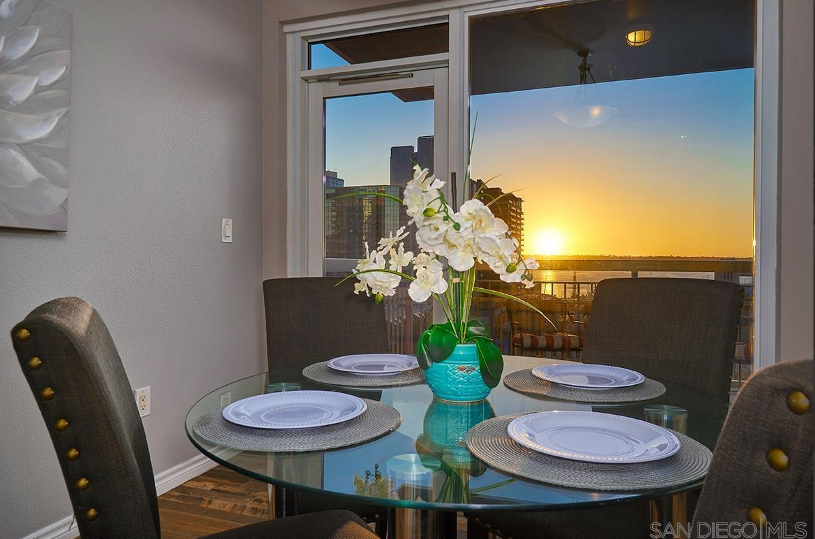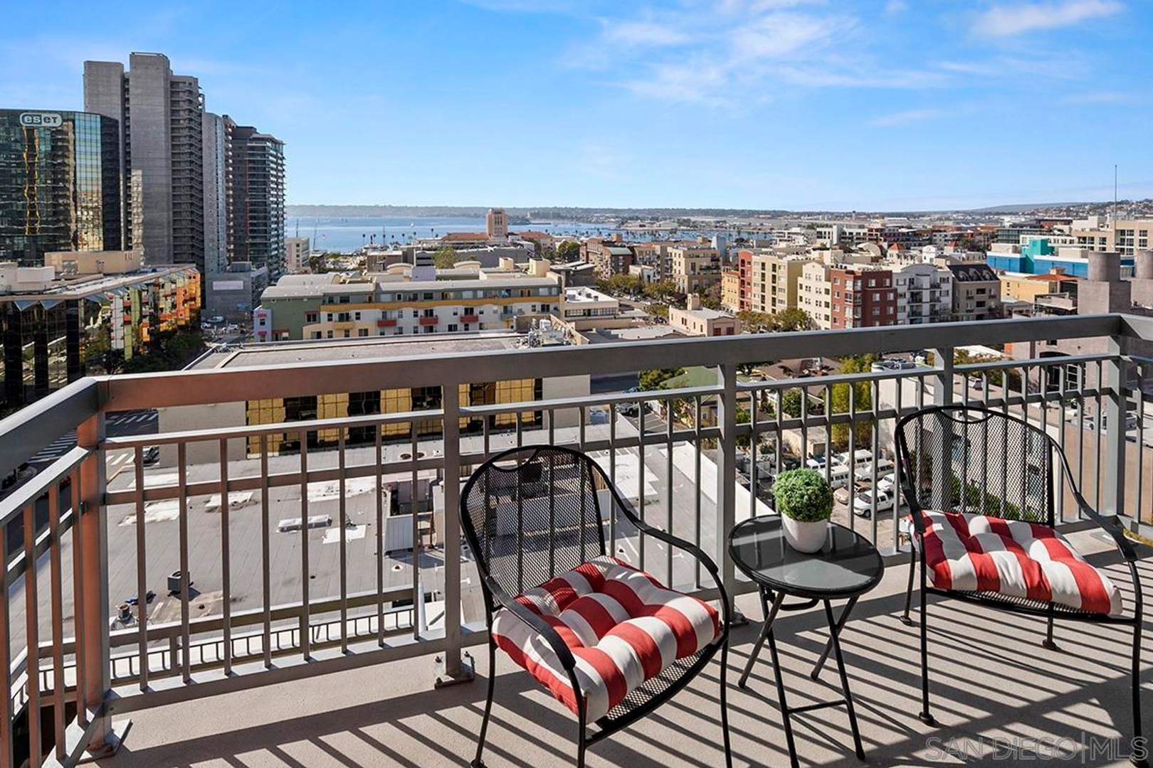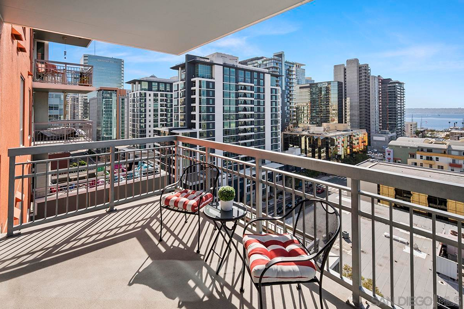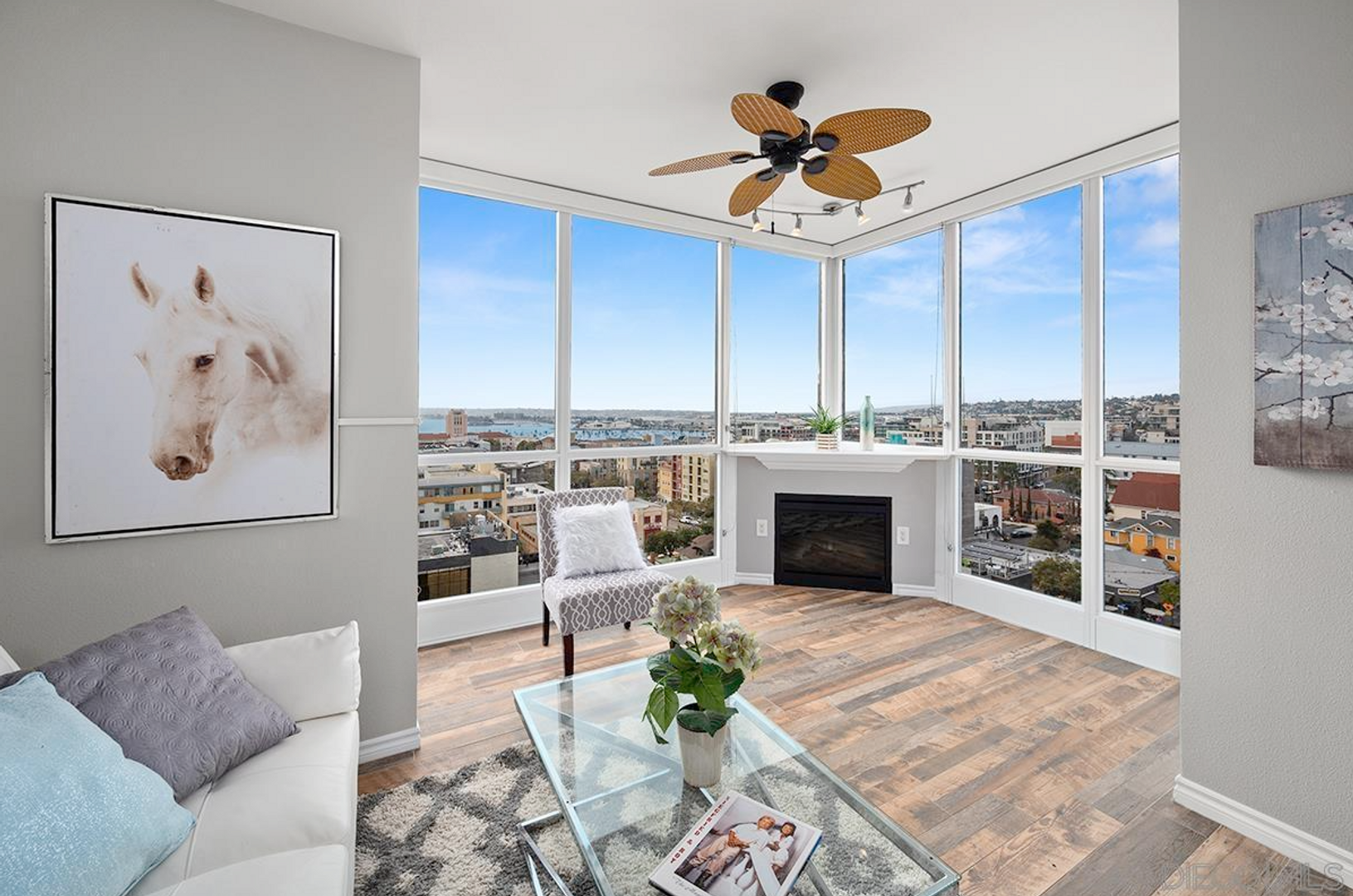 Sweeping bay and city views in Downtown San Diego’s most beloved neighborhood! This 1132sqft 2 bedroom / 2 bath located in the coveted northwest corner La Vita residence is complete with upgraded wood grain ceramic tile flooring, ambient fireplace, split floorplan, and a private balcony overlooking the sights and sounds of bustling Little Italy. Kitchen is complete with recessed and under cabinet lighting, custom tile backsplash, and granite counters and eat-at bar.  With walk-in closets in both bedrooms, central heat and A/C, cooling ceiling fans, elegant baseboards, two side-by-side parking spaces, and all of Little Italy’s vibrant lifestyle offerings, this is the urban abode you have been waiting for!